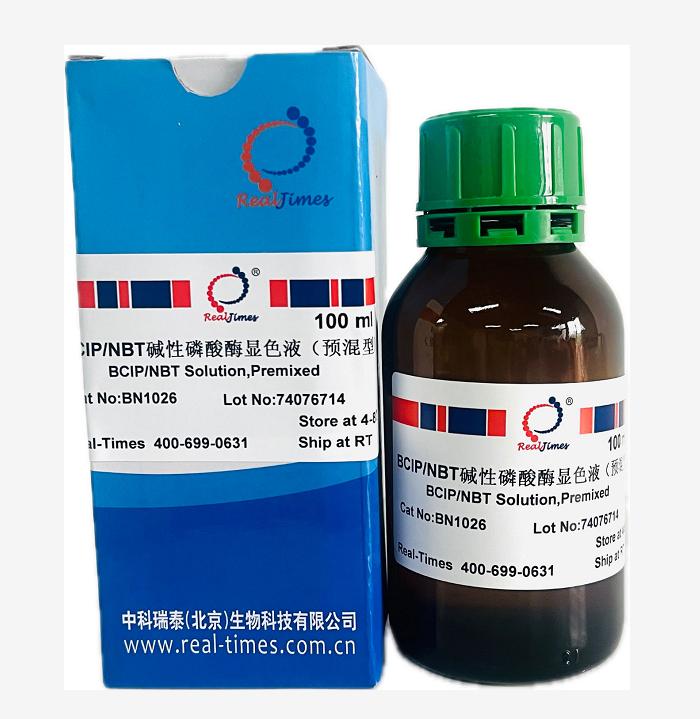 現配現用:BCIP 和 NBT 通常為粉末狀(需 - 20℃避光保存),使用前用二甲基甲酰胺(DMF)或水溶解(按說明書比例,如 NBT 50mg/mL、BCIP 50mg/mL),配制成母液后立即稀釋到緩沖液中(工作液需當天使用);長期放置會導致底物氧化,出現預沉淀。