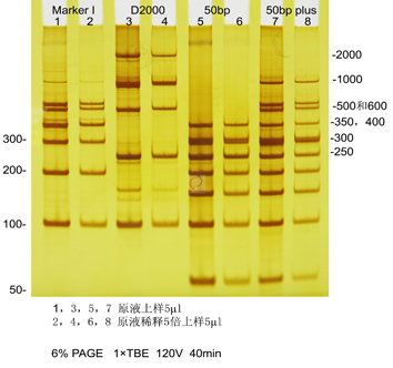for Nucleic Acids)是一種快速簡單、可用于聚丙烯酰胺凝膠中的核酸檢測的試劑盒。該方法檢測靈敏度比 EB 高達 200 倍,能檢測到10ng的 DNA條帶,常用于檢測 SSR 標記、SNP 標記等。