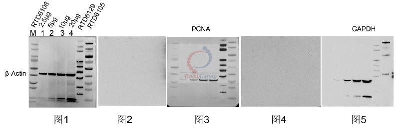轉膜條件:PVDF膜 孔徑0.45μm,1×RealBlot快速轉膜液(貨號:RT5020) 恒流400 mA 30 min